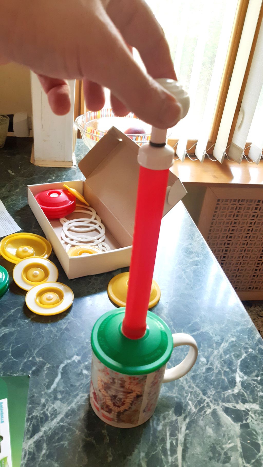 Купил на днях. Крышки двух видов на стандартные банки 82 мм и 66 мм. Насос мощный. Попробовал к руке присосаться -на сантиметр оттягиваешь поршень и ощущения уже сильно болевые на коже. Рекомендуется 10-20 качков поршнем для достаточного вакуума. Испробовал пока на кружке обычное установить крышку и на банке обычной 500 мл. Держит намертво !