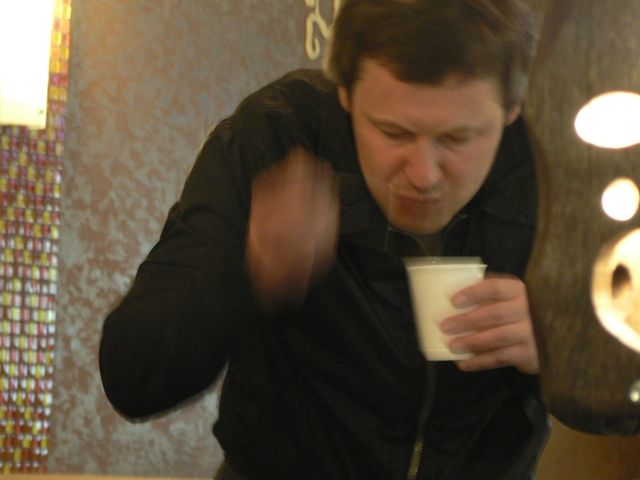 Мой триллер. Последний раз я участвовал в чемпионатах бариста в 2007. Вроде показал не плохой результат, 4 место, и решил больше не участвовать. Держался три года и вдруг прорвало. Захотел острых ощущений… Начал подготовку вместе А. Хаджи. То ли Лондон меня манил, то ли стать чемпионом хотелось. Быть чемпионом – самое сокровенное желание любого бариста. Один раз был очень близок к титулу в 2006 году, но остановился на серебряном пьедестале. Но речь не об этом! Решил использовать свой старый проверенный рецепт. Немного подретушировал коктейль – вроде не плох. Я так думал и другие выражали поддержку. Как обычно прогнался пару раз, вроде вложился во время и с эргономикой все в порядке. Но тут подвох… В 17:24 я вышел на сцену. Все пошло нормально. Заметил пару ошибок с первых секунд. Собрался и погнал. Как только начал наливать ингредиенты в джиггер руки затряслись как у … даже не знаю. Давно не тряслись руки с времен первых чемпионатов в далеком 2005. Думал такого уже никогда не будет. А нет! Заляпал всю станцию. Конечно судьи заметили мое волнение. Это ощущение заставило мое сердце биться еще напряженней. 8:09 на таймере - отстрелялся. Набрал 18,5 балов с учетом штрафных 0,5. 18,5 меня не устраивало категорически! Наделся не менее 24 набрать. Что есть, то есть. Обошел всех предидуших и выдохнул. И тут началось. Ожидание… Самое тяжелое испытание, которое еле пережил в тот день. Самый ближайший конкурент был А.Хаджи под 11 номером. Но пару человек перед ним, заставляли исчезать мои нервные клетки быстрей и быстрей. Тот день, да и неделя перед чемпионатом были на грани нервного истощения и срыва. Думал отстреляюсь и все! Вышел Саня и как всегда без тени сомнений начал презентацию. Он всегда спокоен и уравновешен. Все делал суперски. Пару незначительных ошибок. И тут мое сердце облилось кровью – два айриша, сливки смешались с базой. Бля, это полный п…ц! Я надеялся успокоиться в тот вечер и передать «желтую майку» лидера ему. Приговор – 15 балов. И тут все началось. Быстро пролетел 12 номер. Номер 13, Руслан Якубов – вечный конкурент и друг. Презентация супер! Бешенная поддержка публики! На моей памяти – это самая лучшая поддержка участника за всю историю чемпионатов. Руки у Руса тряслись, как и у меня, но меньше. Нервы на пределе. Инстинкт мне подсказывал не сдаваться. Поздравил друга с красивым выступлением и явной победой. Я уже все понимал, но отказывался верить. Стоять на сцене и ждать – это смерти подобно. 21 бал. Протягиваю руку первым, так всегда делают в футболе – тренер проигравшей команды первым приветствует своего оппонента. Но Руслан затянул время и ему дали 2,5 штрафных бала. 18,5 = 18,5. Но это меня не успокаивало. Уже все понятно. Сухая слеза струилась из глаз. Так близко был к заветному чемпионству. Разорванный внутри, я уже не мог сдерживать свои эмоции. Кто-то нас фотографировал, мы обнимались. Де жа вю в реале!!!! Спустя 4 года я не был готов к такому раскладу. Номер 14. В него не верил ни кто! Под овации публики он порвал нас на тряпки. Мои нервы выглядели как решето! Не мог поверить в этот фарс... Грехов – 1, Якубов – 2, Луговской – 3. Прямо как у Хичкока…