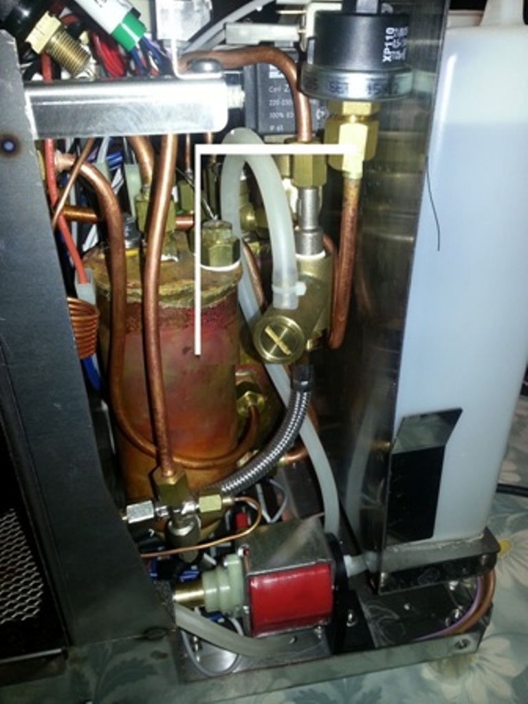 желтая заглушка - прессостат, настраивает давление в паровом бойлере пипка с плюсом и минусом - термостат, настраивает температуру в кофейном бойлере 3ий регулятор доступен уже со снятым корпусом, а не только крышкой. Он справа, если смотреть на машину спереди - это OPV, настраивает максимальное давление при проливе.