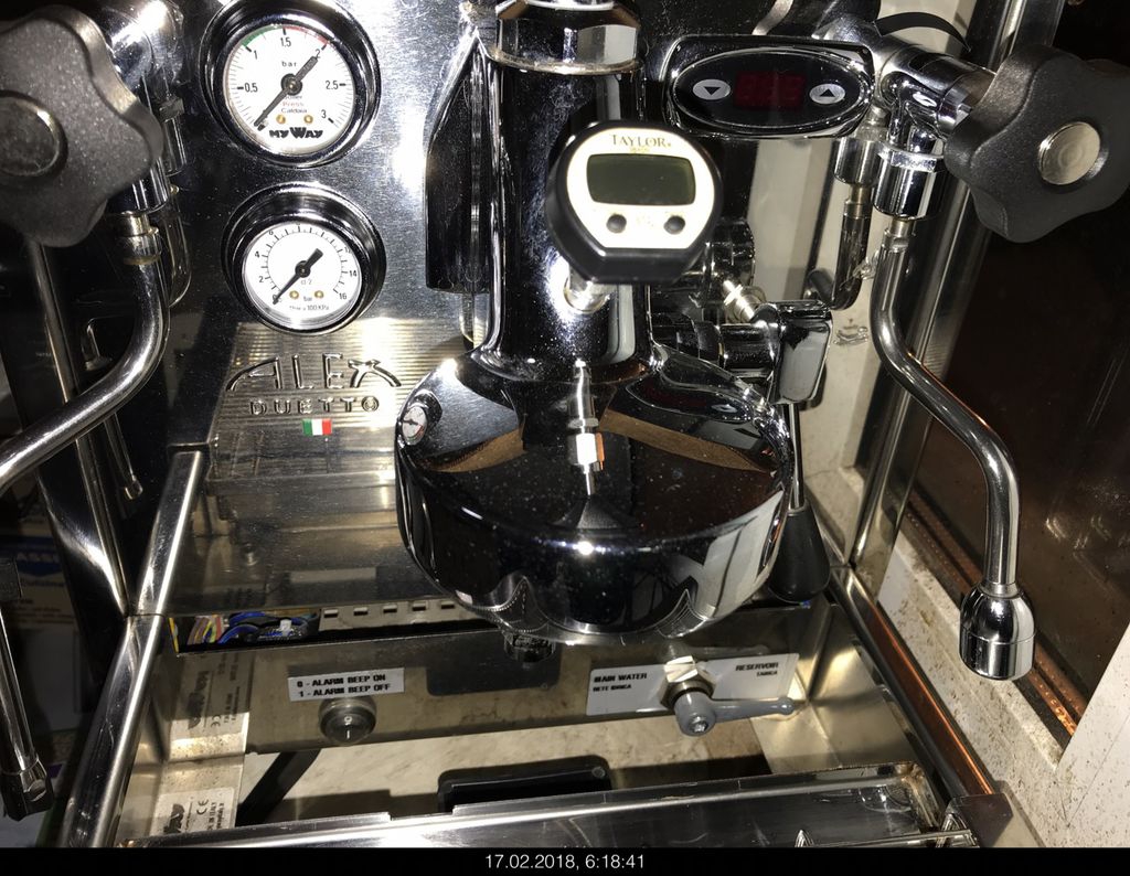 В группе менялась прокладка на селиконовую. Была установлена паровая трубка La Marzocco для возможности установки популярных паровых насадок с отличной от родной резьбой.