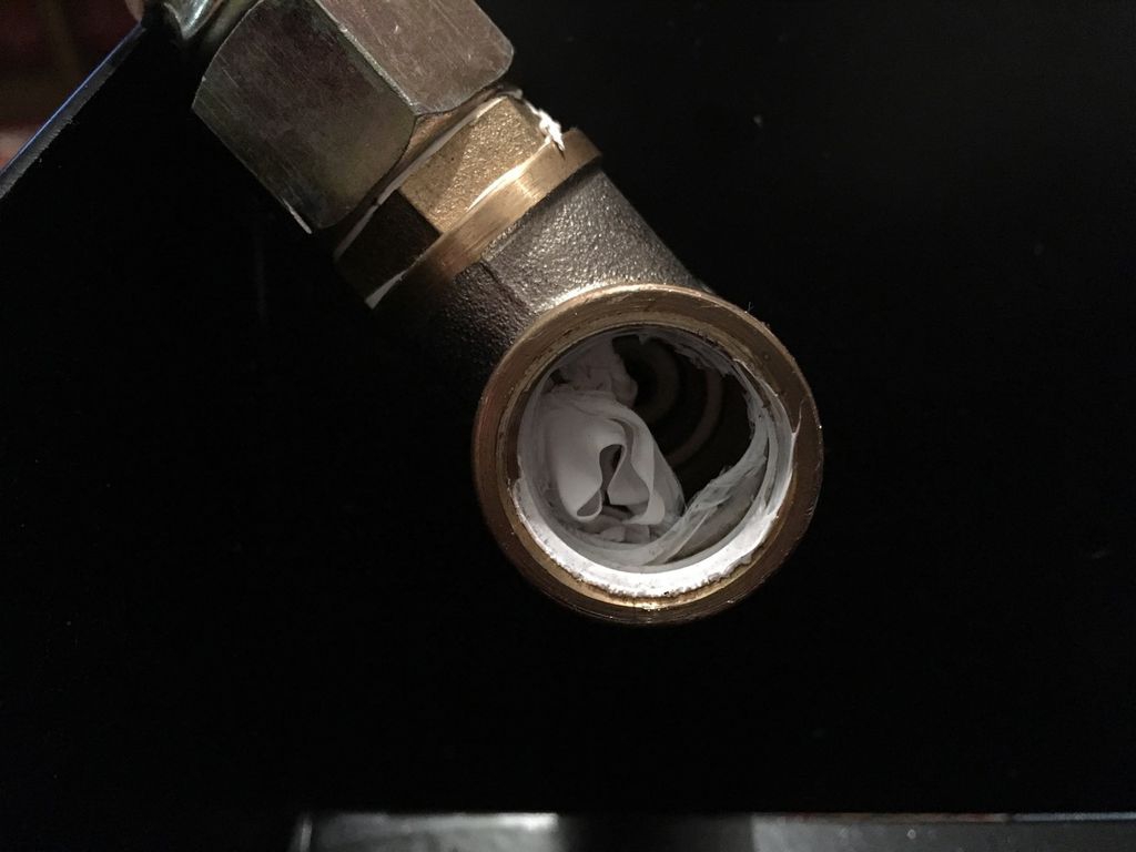 Дальше смотрим на нагревательную поверхность. Тут уже волосы начинают шевелиться во всех местах. Все шланги соединены на водопроводную фурнитуру с огромным слоем фум-ленты. Даже шланг используется для воды. Игольчатый клапан подключен неправильно — перепутаны вход и выход, и это при том, что на самом кране выгравирована стрелка с направлением тока газа. Объясню, почему я вообще полез разбираться с проводами и шлангами — я ждал оборудование два месяца и уже не хотел тратить время на разборки с производителем, возврат оборудования, ожидание ремонта и повторную отправку мне. Это затянулось бы еще не на один месяц. Итак, с такой плиткой жить нельзя (особенно учитывая состояние электрической части) и я разбираю все соединения, чтобы пересобрать на газовых шлангах и фурнитуре. Во всех местах соединений накручено столько фум-ленты, что она почти перекрывает проходное сечение. А в одно месте в тройнике просто лежал комок фум-ленты. Он наверняка забил бы проток. Это еще не все. Определяем тип горелки — это Ирида-150 мощность 2.5 кВт. Производитель ростера заявлял ее как на 3.5 кВт и только по этой причине я ее заказал. На мой резонный вопрос «Что за фигня?» мне ответили, что максимальная мощность достигается при подаче газа давлением 6 мПа. Естественно, я надеюсь, что они имели в виду не миллипаскали и не мегапаскали, а просто перепутали с килопаскалями. Но в любом случае они предлагают вместо номинального давления в 1.6 кПа после редуктора использовать 6 кПа. То есть надо убрать редуктор и повысить давление игольчатым клапаном до нужной величины ориентируясь на показания манометра. И надо надеяться, что водопроводные соединения без прокладок это давление выдержат? Более того. Сама горелка оказалась бракованной — она горит несколько минут, потом раздается громкий хлопок, она тухнет и горение с шумом происходит в смесителе на выходе из форсунки внутри нагревательной поверхности.