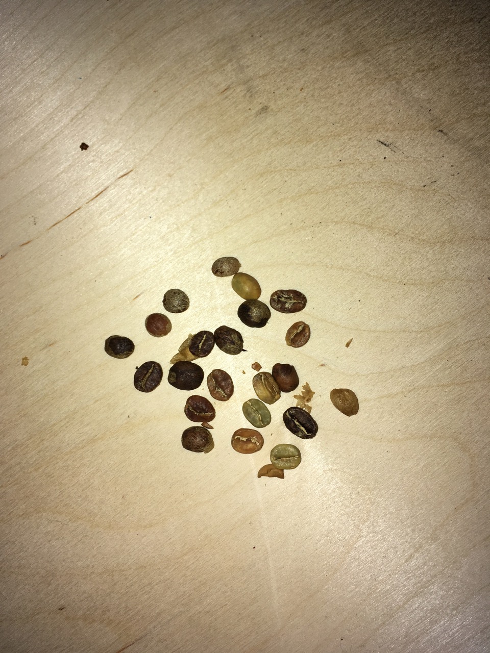 после обжарки остается в барабане немного зерен разной степени обжарки — от совсем зеленых до почти обжаренных.