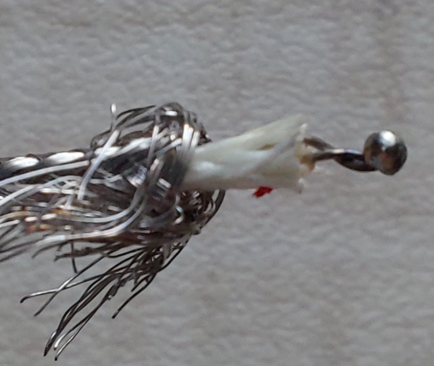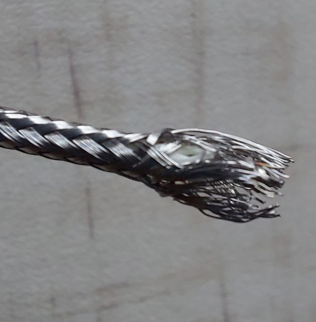 В комплекте с rex-c100 датчик, который очень медленно реагирует на изменения температуры, что абсолютно не удивительно, учитывая то, что я нашел внутри. Для снятия корпуса нужно разжать обжатую гильзу, что у меня не получилось и я просто спилил надфилем её края, чтобы отогнуть зажатую часть. Внутри корпуса датчика он сам висит в воздухе. На фото: