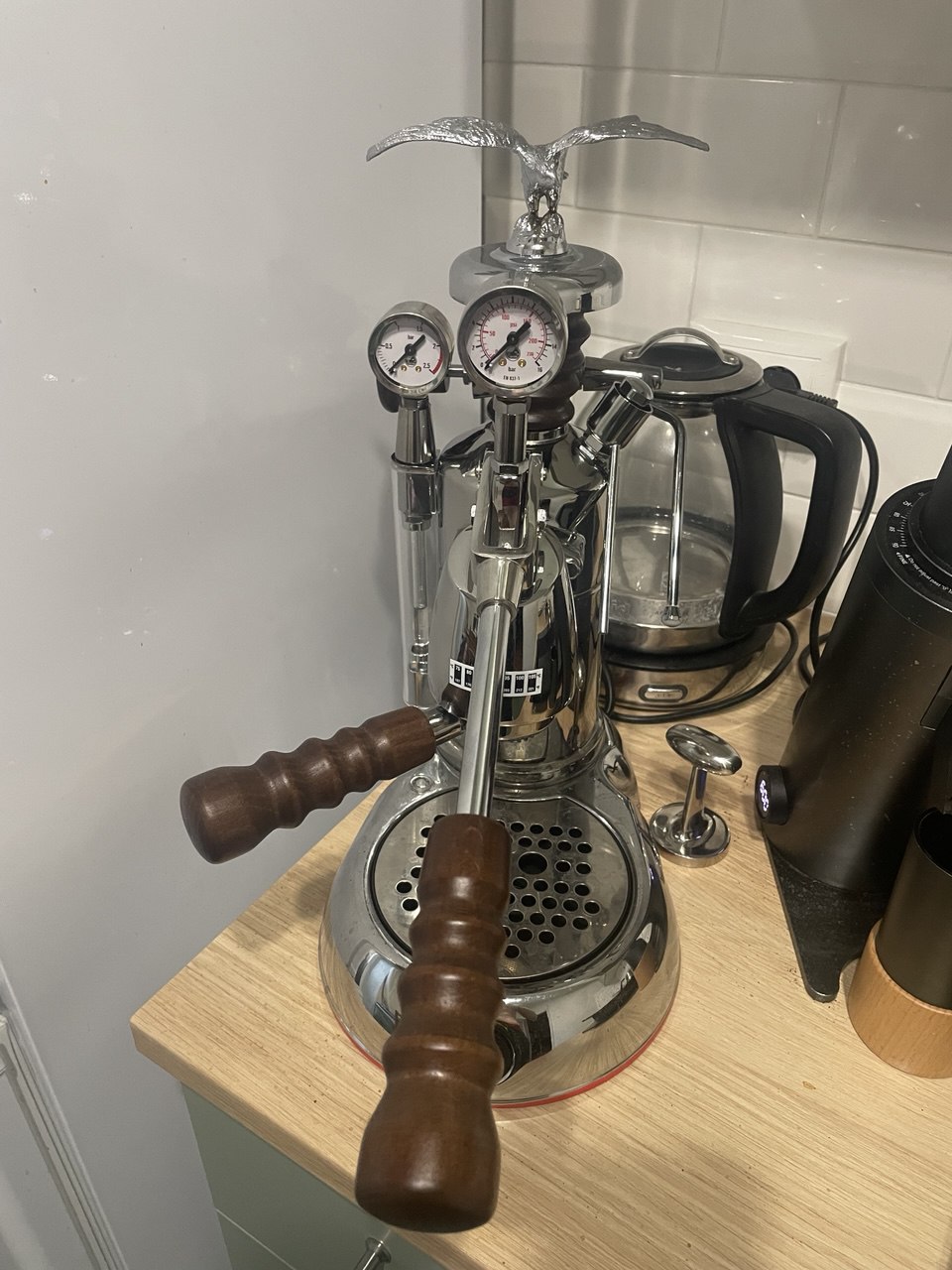 Не сразу разобрал посылку так как принял решение сделать под хобби отдельную кофейную станцию. К сожалению до НГ мне не успевали сделать под заказ, так что пришлось собирать из готовых решений. На праздниках решил собрать. Все запустилось, буду учиться готовить начиная со стандартного 9 бар с последующим переходом на профилирование. P.S. Перед приготовлением первой кружки не нужно ли проливать сквозняком бойлер и долго ли? Пролил штук 4-6 на случай если в нем стояла вода.