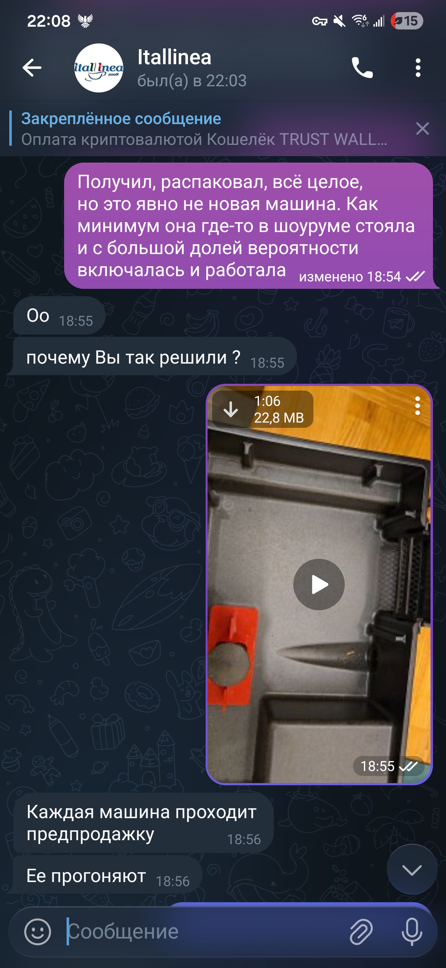 Но в итоге он Вас обманул, правильно? Вы вскрывали коробку и увидели новую машину или видели что она б/у? Если она была новая, зачем вы её протирали? По её состоянию вообще у любого не будет никаких сомнений что она она была распакована ранее стояла где-то и включалась и работала не единожды. Как выглядит распаковка новой я прислал на видео, так у вас было? Если видели что б/у почему не сказали сразу что пришла с нюансом, на видео ведь презентовали мне что новая.