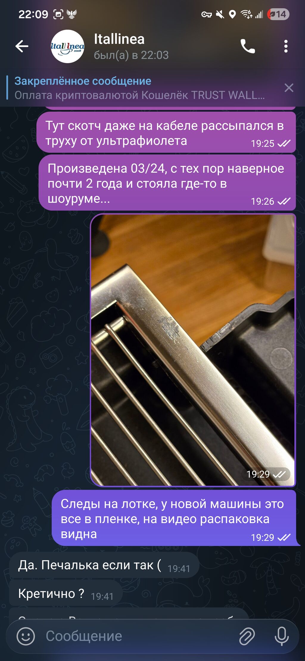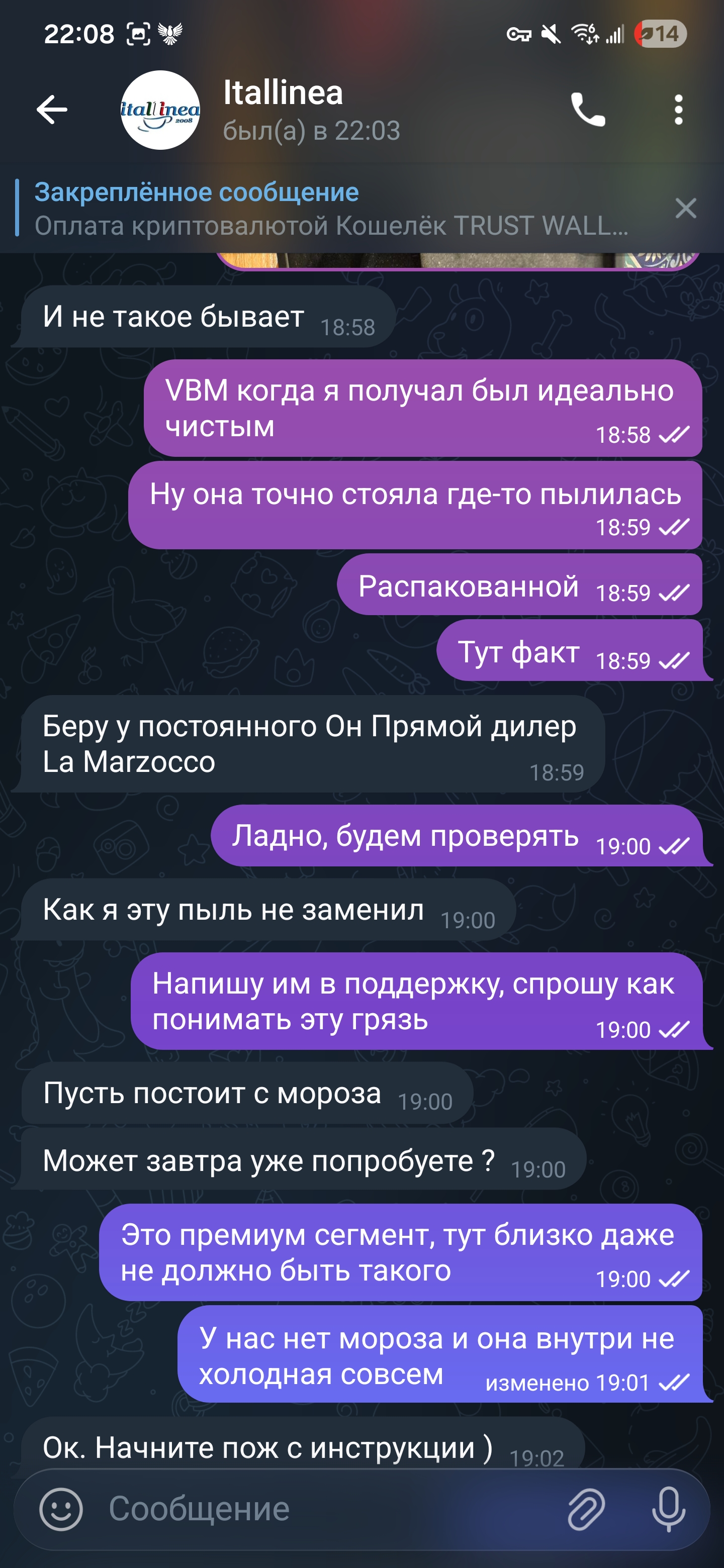 Ждём конечно, я поэтому максимально лояльно всё описал без обвинений, но кажется ответа не будет, Во всяком случае такое ощущение. Кофе вероятнее всего варили тоже, т.к. были следы липкие засохшие, думаю молоко.