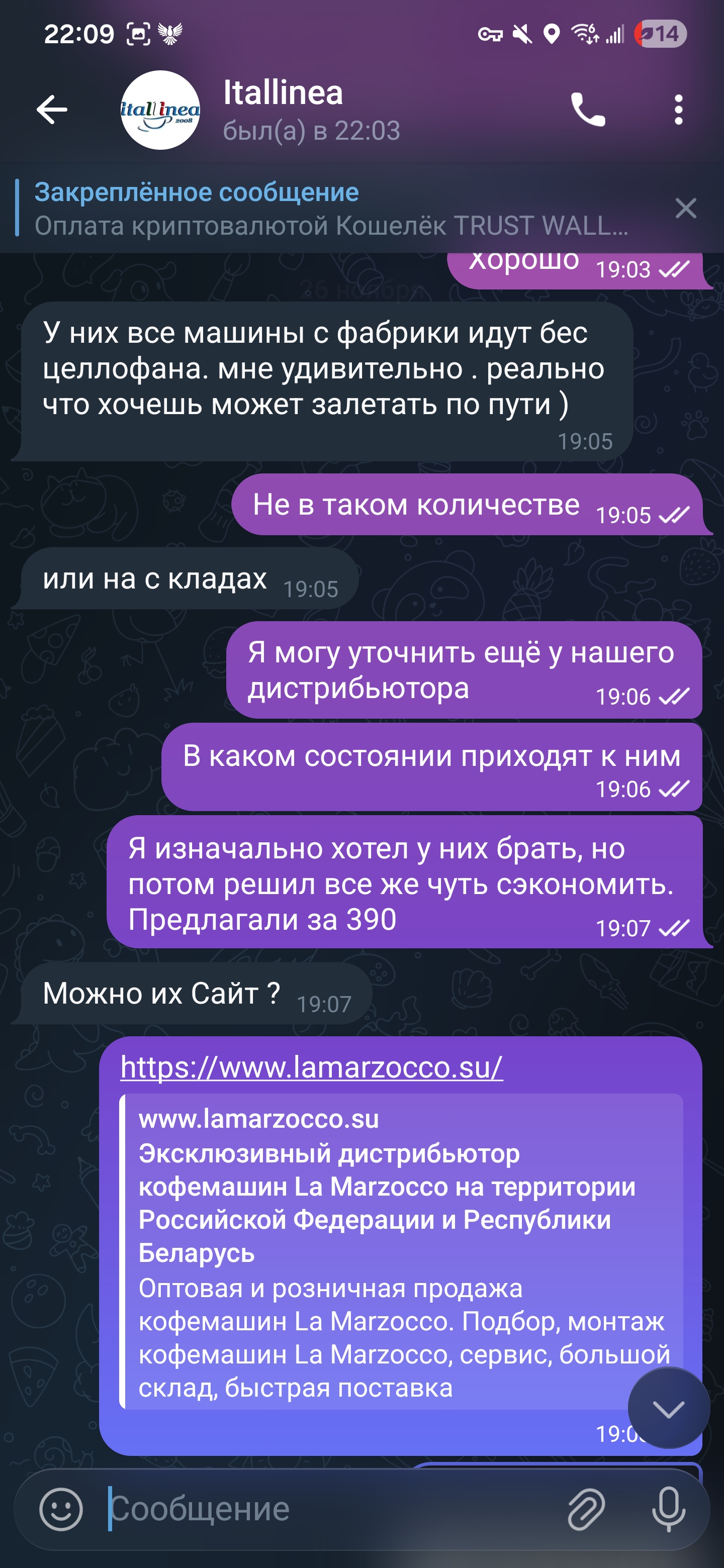Нет. я не говорил что работаю с La Marzocco на прямую. Это опять Ваши догадки. Беру у местного, порядочного и проверенного дилера. Причем давно. Но. ок. Клиент всегда прав ! Спасибо