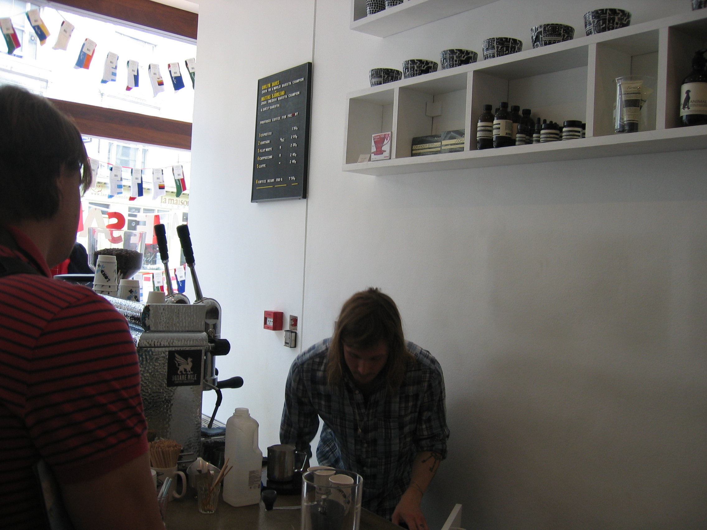 Приходи к нам на угол Пушкинской и Прорезной. Попробуешь плоского белого у нас. Подтверждаю слова garliq, у них в Лондоне оч круто. Маттиас оч прикольный парень. Калбасит флетвайт без остановки. Что касается флетвайт, все его делают по разному. В taylor st baristas просто супер. Атмосфера отпад. Крохотное помещенье в 12 м2 с очередью в 20 чел. Пообщался там с девушкой бариста, рассказал ее про наш кофепоинт на улице - нас назвали МИЛЛИОНЕРАМИ. Очень приятно! В Англии не просто кофейная революция, у них кофейная атомная бомба рванула.