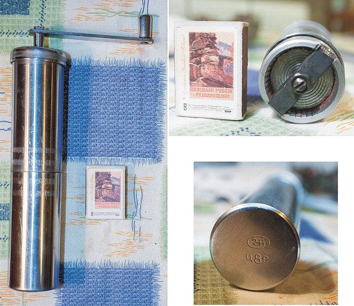 Доброго времени суток. В мои руки попало сие творение времен СССР. Как понимаю мой образец был юзан и в хвост и в гриву. Из огромных минусов: 1. Очень долго молоть 2. "Бункер" толи сломан, толи резьбу свернули, толи так задумано (слетает периодически, чуть сильнее если попытаться прикрутить то прокручивается и слетает сразу в руках)