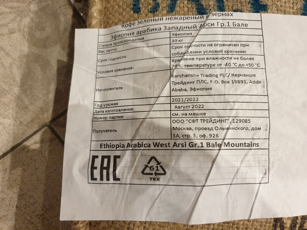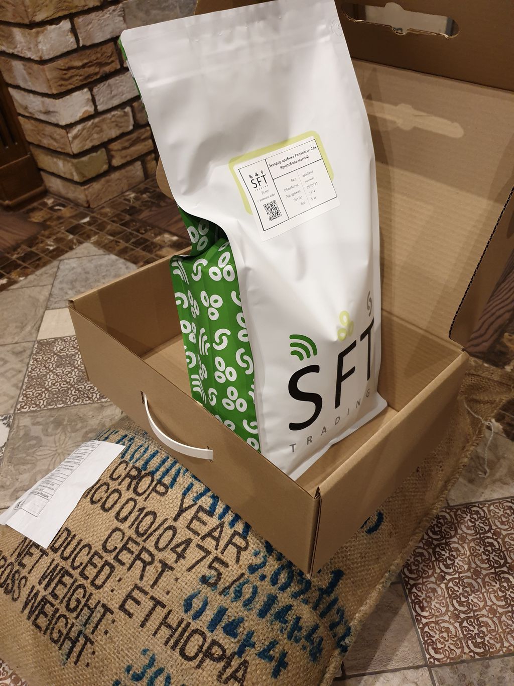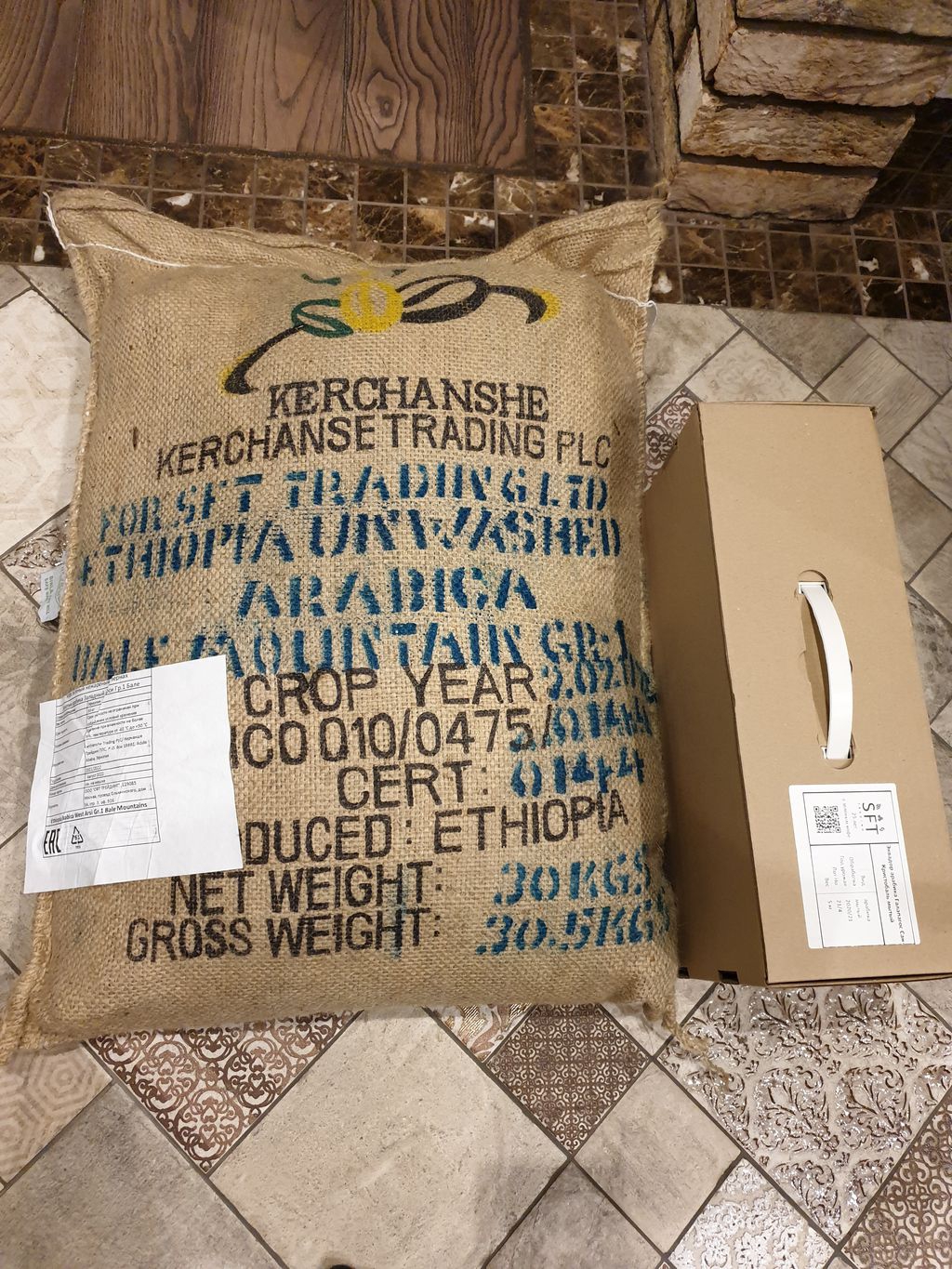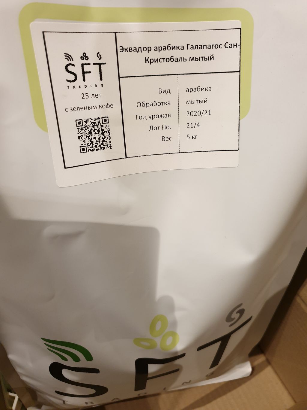 Получил из SFT зеленый кофе: 1. Эквадор Галапагос Сан-Кристобаль мытый (оценка 85,75, урожай 21) малая упаковка 5 кг 2. Эфиопия Западный Арси Гр.1 Бале Маунтин сухой (оценка 85, урожай 22) мешок 30 кг