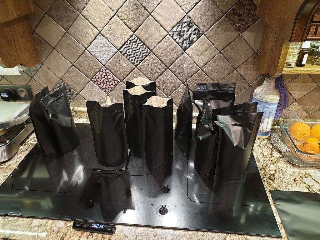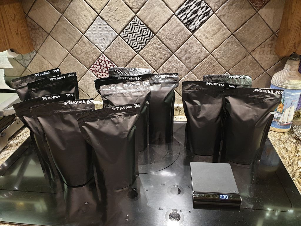 Эфиопия расфасована Как только все собщат контакты пойду отправлять в СДЭК. Пакетики оказались маловаты, поэтому 1 кг = 2 x 0.5; 2 кг = 2 x 0.7 + 0.6; 3 кг = 4 x 0.75