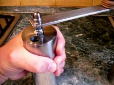 В помоле отмечу фактическое отсутствие комков. Усилия при помоле, даже на "единичке", оцениваю как умеренные. Для помола 14 грамм, на "шестёрке", потребовалось всего 12 оборотов ручки. На мой взгляд, ручка очень удобная, оптимальной длины.