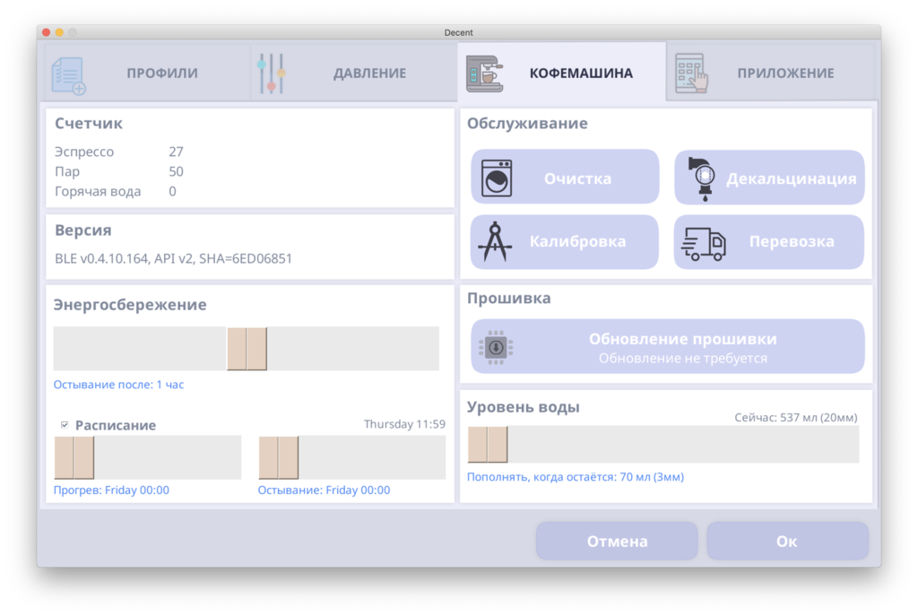 на днях выпустили новую прошивку для кофемашины. честно говоря, в этот век технологий это может и не удивительно, но достаточно приятно. они поработали над тем, чтобы пар стал суше и мощнее. и это на самом деле ощущается в питчере, как теперь взбивать маленький питчер я даже не представляю. если же судить по графикам, температура 160, давление переступает 2 бара и стремиться к трем. еще добавили возможность отключения нагревателя для холодного пролива. модники.