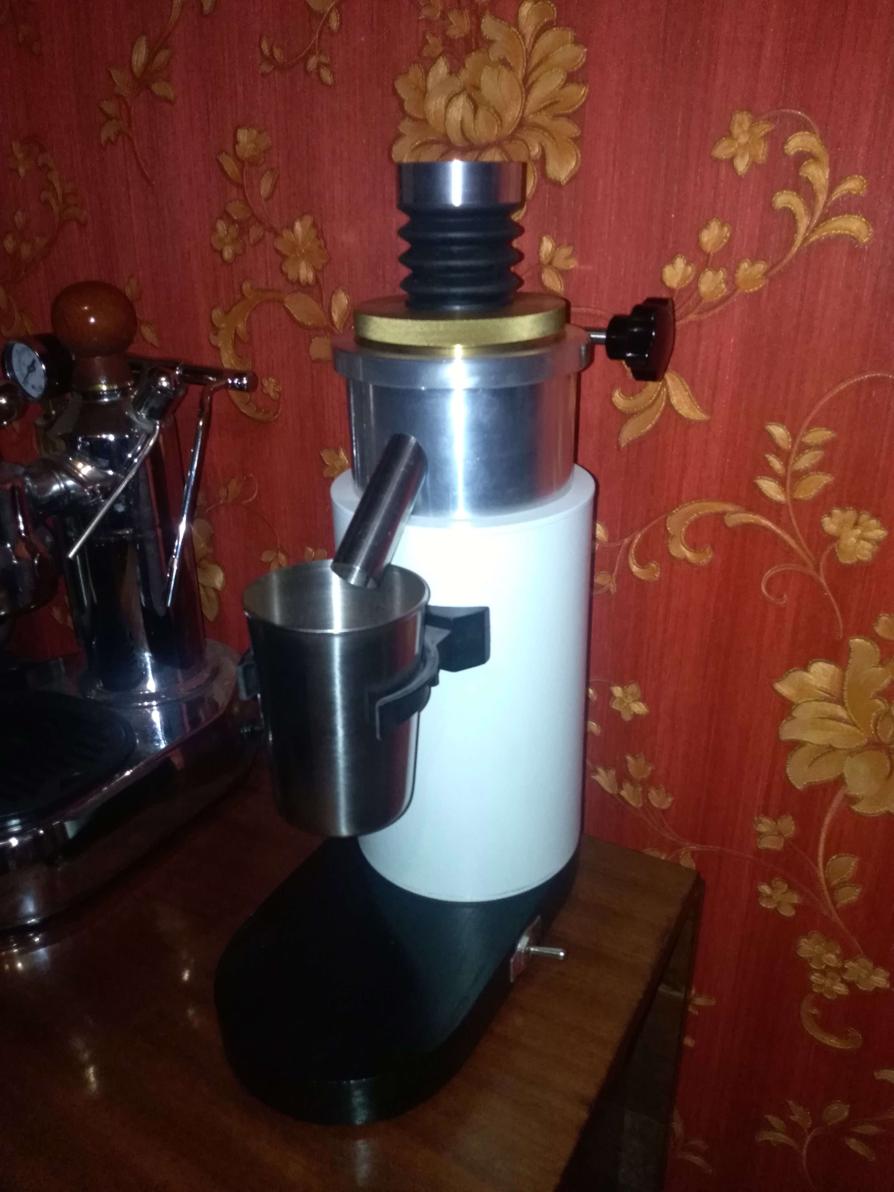 Приветствую! Не хочу заводить пока отдельной темы, так что оставлю здесь. Сделал для себя первую электрическую молку на основе жернов от мальконинг ProM. Помол выдаёт отличный, но больше подходит для альтернативы. Эспрессо готовить на павони из 14 грамм не всегда возможно, всё зависит от зерна, но если получается то вкус получается очень хорош и практически не чувствуется горечь. Молка изготовлена в варианте под углом, регулировка осуществляется латунным блоком и фиксируется зажимным кольцом (по типу монолита). Кнопка работает по таймеру и можно запрограммировать любое время. Например одно нажатие кнопки 5 секунд, а двойное нажатие 18 секунд. В целом молкой очень доволен и положено начало разработки электрических:)