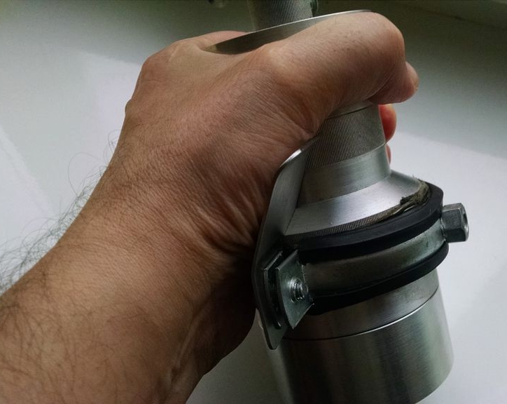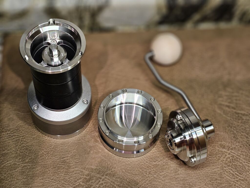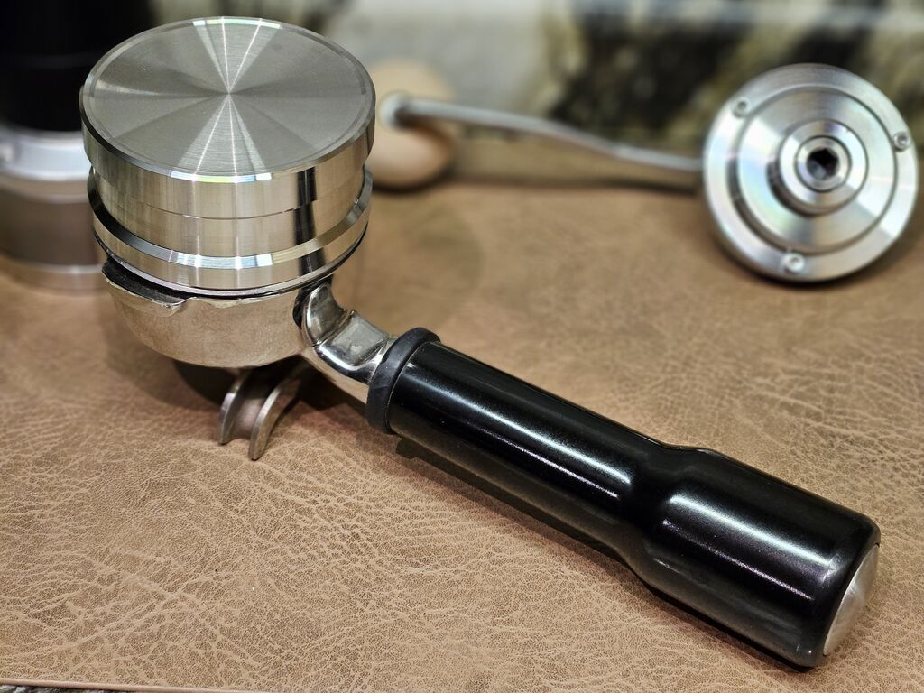 5) приемный бункер для молотого кофе из нержавеющей стали, исключающий комкование и накопление статики, прочный, надежный, с креплением на 12 магнитах (магниты точно подогнаны и не плавают в процессе использования по высоте, в отличие от некоторых Kinu). Диаметр бункера точно соответствует диаметру стандартной корзины 58 мм, поэтому для быстрой и чистой перегрузки молотого кофе в корзину портафильтра не требуется воронка;
