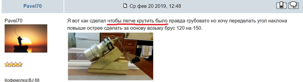 Ув. ТС. Это же меняет дело. Вы бы сразу сказали, что аудиофил, к вам при таком стиле - ноль вопросов. Основная целевая аудитория приобретателей ручных молок ищет компактность, мобильность с доступностью цены. Другими словами осмысленную разумность покупки. Это не элемент спора, ваш подход понятен, но очень многим он не присущ.