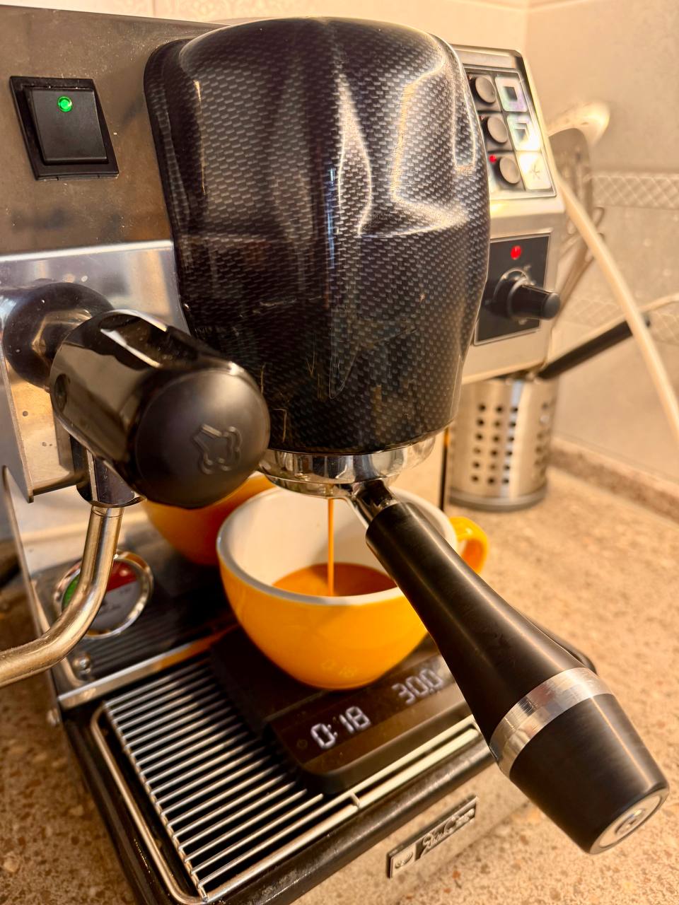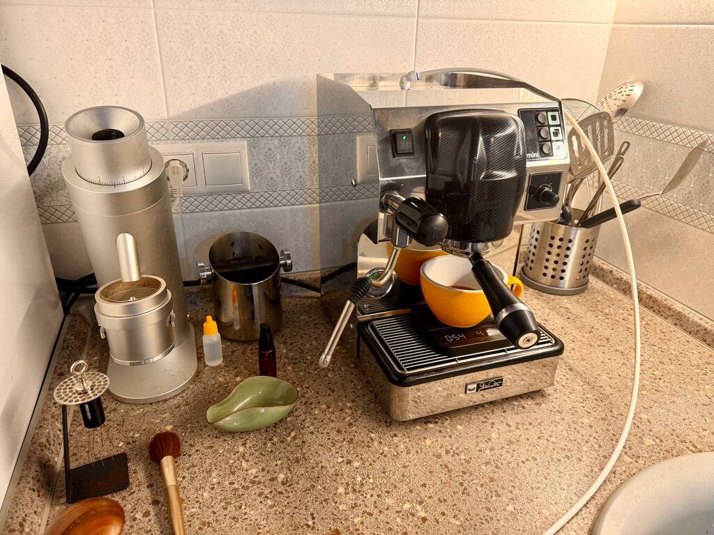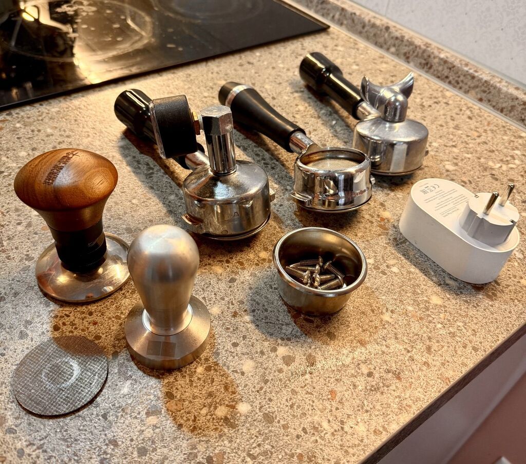 Готов показать в работе, ответить на технические вопросы. Комплектация полная, дополнительно бездонный портафильтр, пак-скрин, push-темпер от Bomber, предотвращающий перекос темперования и расточенный в размер корзины, wifi-розетка для прогрева по таймеру и дистанционного включения.