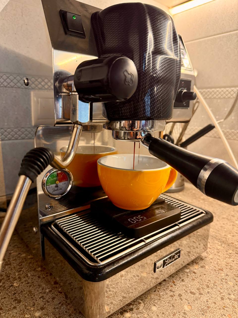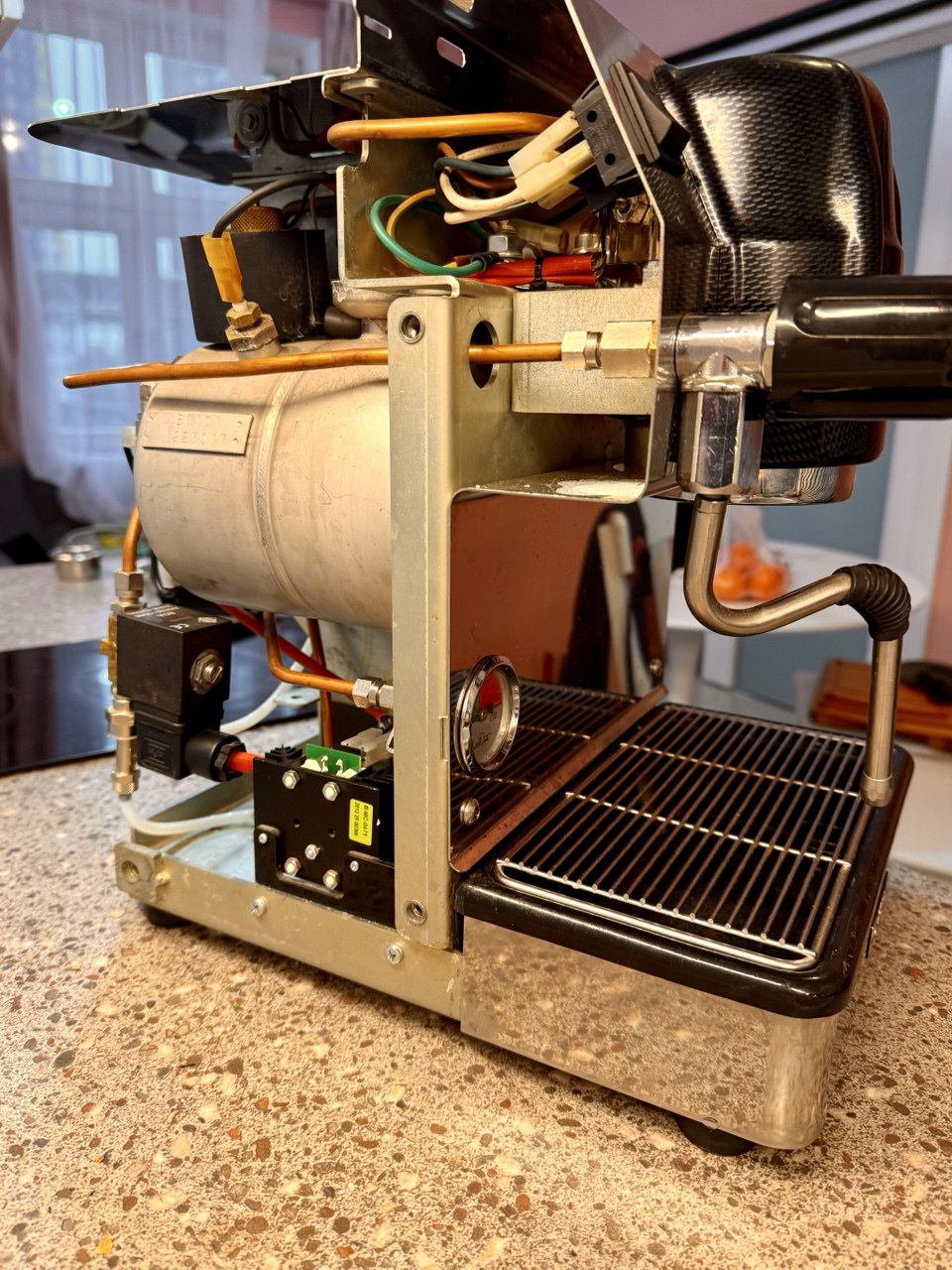 Что было сделано: - Установлен профессиональный роторный насос от старшей модели для прямого подключения к водопроводу, давление легко регулируется помпой, а поток жиклером (для совсем энтузиастов-экспериментаторов -- могу отдать игольчатый клапан, который легко устанавливается в магистраль для функционала Slayer). - Реализована функция плавного предсмачивания (pre-infusion), что обеспечивает полное раскрытие вкуса кофе. - Заменен блок электроники на новый оригинальный.