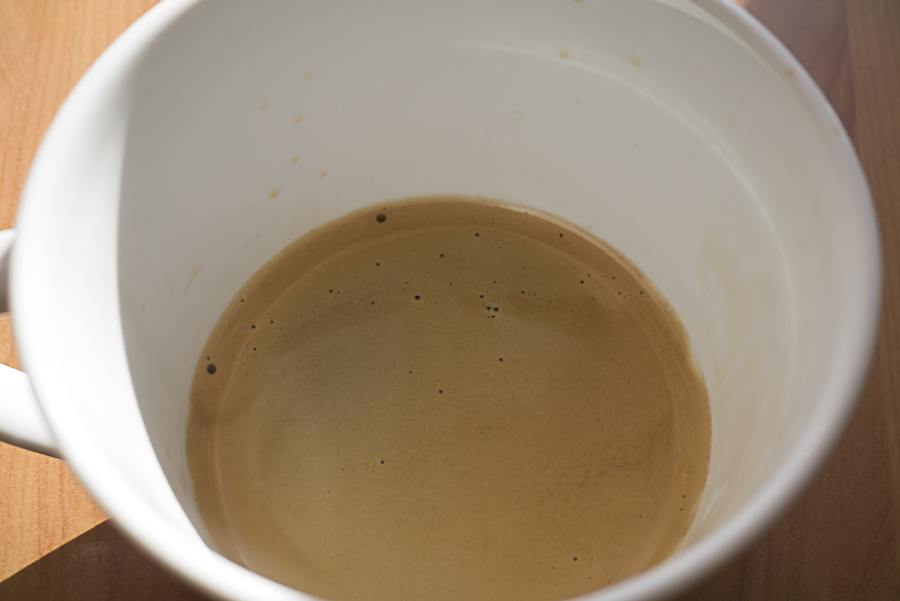 Если дело не в цветопередаче, то крема явно бледновата. Но это еще ничего по сравнению с видом кофе со взбитым молоком, ибо капучино это назвать никак нельзя.