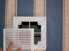 Запахоотвод состоит из гофрированной трубы из алюминиевой фольги и пластикового фланца, который вставляется в отверстие вентрешетки и закрепляется там четырьмя саморезами. Все куплено в магазине, торгующем вентиляционной техникой. Гофротрубу надо брать металлическую (еще есть пластиковые), т.к. температура проходящих по ней газов довольно высока. Вентрешетку и фланец к ней я брал комплектом одного производителя (Эковент), т.к. конструкция у меня временная и устанавливается только на время обжарки. Монтаж нетрудоемок, занимает 1-2 минуты. Когда не жарю, на место фланца встает декоративная решетка.